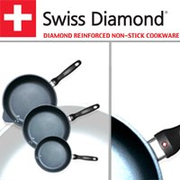 Swiss Diamond 10 piece cookware set features a revolutionary non-stick surface using diamond crystals to form a virtually indestructible non-stick cooking surface. This set includes both 1.4 quart and 2.2 quart saucepans with vented tempered clear glass lids, both 8" and 10" fry pans, an 8.5 quart stockpot with vented tempered clear glass lid, and a 3.2 quart sautepan with a vented tempered clear glass lid (fits 10" fry pan). The non-stick surface will not peel, crack, or blister and provides perfect heat distribution for cooking meals containing less fat. The pans are made from a 6mm thick pressure cast aluminum which has a perfectly flat base for use on all ceramic, gas, and electric cook tops. The stay cool handles are ergonomically designed and is safe to use in an oven up to 500F. Metal utensils are safe for use on the non-stick surface and the pan is safe for use in the dishwasher. The diamond reinforced non-stick cooking surface separates this cookware from all others in a way that will enhance the users cooking skills.