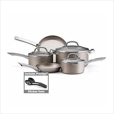 - Includes: 1.5 Quart and 2 Quart Covered Saucepans, 5.5 Quart Covered Stockpot, 7 Inch and 10 Inch Skillets, two Prestige kitchen tools including a Solid Spoon and Slotted Spoon.- Glass lids allow you to monitor cooking without losing moisture or nutrients.